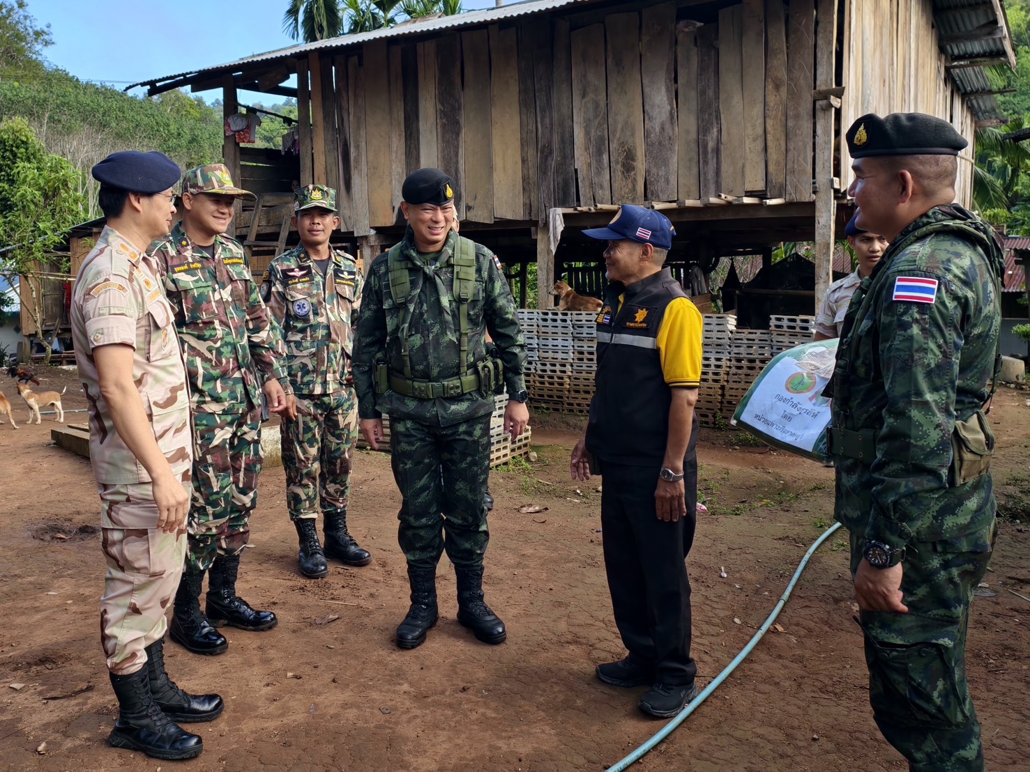 วันที่ 5 พฤศจิกายน 2568 พลตรีณัฏฐพงศ์ อัศวินวงศ์ ผู้บัญชาการกองพลทหารราบที่ 9 ในฐานะ ผู้บัญชาการกองกำลังสุรสีห์ เปิดเผยว่า ตามนโยบายของ พลเอก พนา แคล้วปลอดทุกข์ ผู้บัญชาการทหารบก ในฐานะผู้บัญชาการศูนย์ปฏิบัติการกองทัพบก ให้หน่วยทหารในพื้นที่ชายแดน บูรณาการร่วมกับหน่วยงานความมั่นคงในพื้นที่ เร่งปราบปรามและป้องปรามการกระทำผิดกฎหมายทุกรูปแบบในพื้นที่ชายแดน เพื่อป้องกันสิ่งผิดกฎหมายทุกชนิดเข้าสู่พื้นที่ตอนใน ซึ่งก่อให้เกิดปัญหาและส่งผลกระทบต่อประชาชนอย่างยิ่ง ทั้งนี้ เพื่อให้โยบายของผู้บังคับบัญชาทุกระดับชั้น เกิดผลสัมฤทธิ์อย่างเป็นรูปธรรมกองกำลังสุรสีห์ ภายใต้การสั่งการของ พลตรีณัฏฐพงศ์ อัศวินวงศ์ ผู้บัญชาการกองพลทหารราบที่ 9 ในฐานะผู้บัญชาการกองกำลังสุรสีห์ จึงได้บูรณาการร่วมกับ นายอธิสรรค์ อินทร์ตรา ผู้ว่าราชการจังหวัดกาญจนบุรี สั่งการให้ พันเอกพรรณศักย์ เพรียวพานิช ผู้บังคับการกรมทหารราบที่ 29 ในฐานะผู้บังคับหน่วยเฉพาะกิจลาดหญ้า กองกำลังสุรสีห์ พร้อมด้วย พันเอกปิยะเณศร์ ภัทรศาศวัตวงษ์ รองผู้บังคับหน่วยเฉพาะกิจลาดหญ้า ลงพื้นที่ร่วมกับ นายชาคริต ตันพิรุฬห์ นอภ.ทองผาภูมิ ผกก.สภ.ทองผาภูมิ, หน.อช.ทองผาภูมิ ผบ.ร้อย.ตชด. 135, หน.หน่วยป้องกันและปราบปรามประมงน้ำจืดเขื่อนวิราลงกรณ หน.กองบำรุงรักษาโรงไฟฟ้า เขื่อนวชิราลงกรณ และ จนท.อช.เขาแหลม ร่วมลาดตระเวนตรวจพื้นที่ปฏิบัติการทางน้ำภายในเขื่อนวชิราลงกรณ ที่ผ่านมาผู้กระทำความผิดเลือกใช้เส้นทางทางน้ำ ในการหลบเลี่ยงจุดตรวจจุดสกัดทางบกของเจ้าหน้าที่ฝ่ายความมั่นคง กองกำลังสุรสีห์จึงสั่งการให้จัดตั้งศูนย์ปฏิบัติการทางน้ำจังหวัดกาญจนบุรี ในพื้นที่บ้านท่าแพ ต.ท่าขนุน อ.ทองผาภูมิ จ.กาญจนบุรี เพื่อสกัดกั้นการลักลอบกระทำความผิดทุกชนิด อาทิ การลักลอบขนแรงงานต่างด้าวผิดกฎหมาย และการลักลอบขนยาเสพติด เป็นต้น ต่อมา ผู้บังคับหน่วยเฉพาะกิจลาดหญ้า กองกำลังสุรสีห์ ได้เดินทางไปตรวจเยี่ยมการปฏิบัติงานของกำลังพลประจำจุดตรวจโป่งอ่อง โดยเน้นย้ำการเฝ้าระวัง ป้องกันการลักลอบเข้าไปขุดดินร่อนแร่ทองคำ และการกระทำผิดกฎหมายทุกรูปแบบ พร้อมทั้งมอบสิ่งของบำรุงขวัญให้กับกำลังพล ณ จุดตรวจโป่งอ่อง บ้านปิล๊อคคี่ ม.4 ต.ปิล๊อก อ.ทองผาภูมิ จ.กาญจนบุรี หลังจากนั้น พันเอก พรรณศักย์ เพรียวพานิช ผู้บังคับหน่วยเฉพาะกิจลาดหญ้า กองกำลังสุรสีห์ ร่วมกับ นายชาคริต ตันพิรุฬห์ นอภ.ทองผาภูมิ และหัวหน้าส่วนราชการ ลงพื้นที่ไปส่งมอบความอบอุ่นต้านภัยหนาว โดยมอบผ้าห่มกันหนา