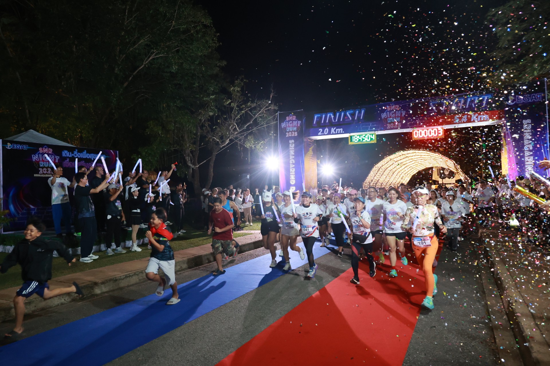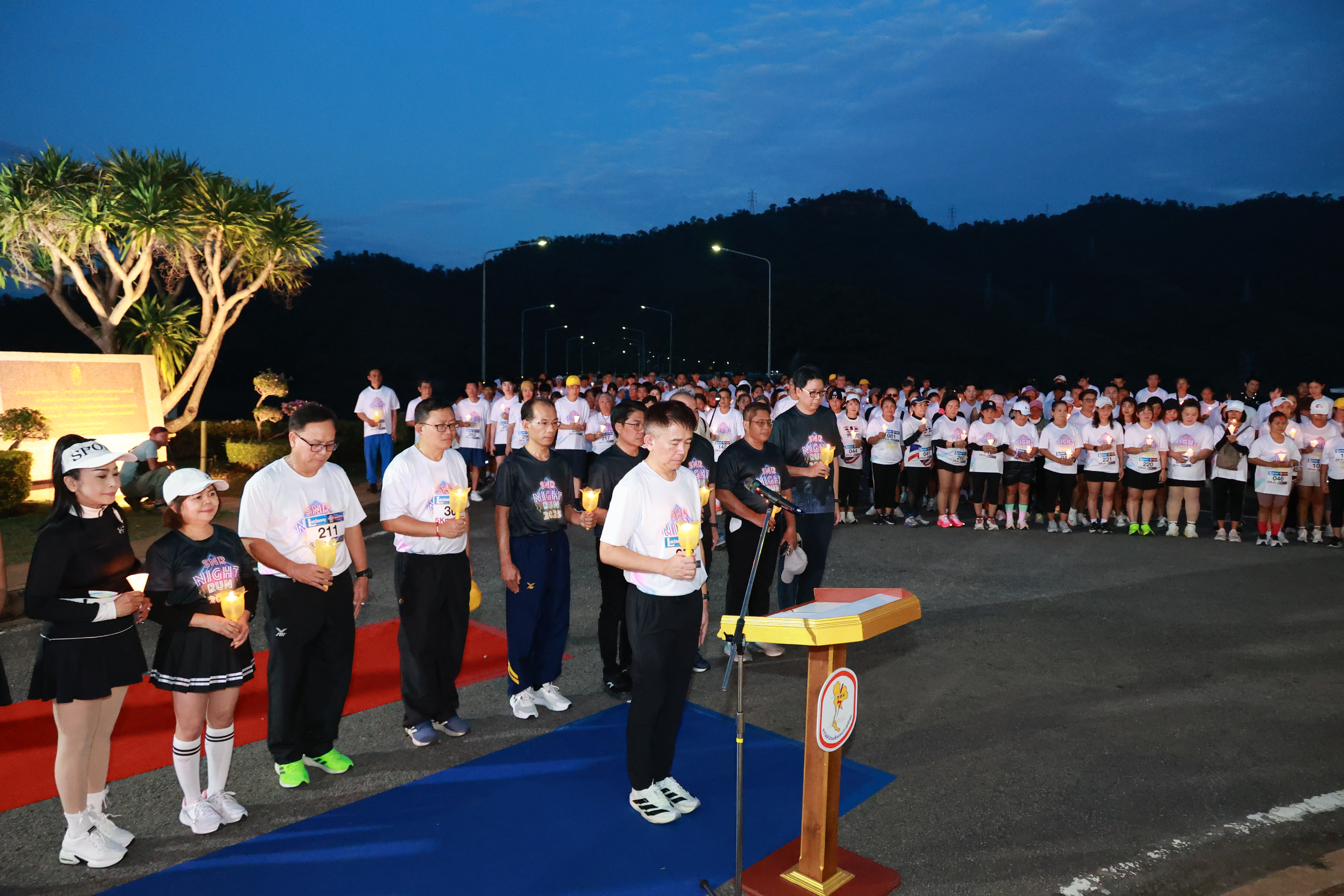 วันที่ 13 ธันวาคม 2568 กฟผ.เขื่อนศรีนครินทร์ จัดงานเดิน - วิ่ง SNR NIGHT RUN 2025 ณ เขื่อนศรีนครินทร์ ตำบลท่ากระดาน อำเภอศรีสวัสดิ์ จังหวัดกาญจนุบรี โดยมี นายวุฒิพงษ์ สุภัควนิช รอง ผวจ.กาญจนบุรี ประธานในพิธีฯ พร้อมกล่าวนำแสดงความอาลัยและยืนสงบนิ่งแสดงความอาลัยแด่สมเด็จพระนางเจ้าสิริกิติ์ พระบรมราชินีนาถ พระบรมราชชนนีพันปีหลวง นายสฤษฎิ์ชัย ผ่องใสโสภณ ผู้อำนวยการเขื่อนศรีนครินทร์ กล่าววัตถุประสงค์การจัดงานฯ หัวหน้าส่วนราชการ ภาคเอกชน ประชาชน และนักกีฬา จำนวนกว่า 700 คน ร่วมการแข่งขันฯ แบ่งเป็นการเดิน-วิ่ง เพื่อสุขภาย ระยะ 5.4 กิโลเมตร และ 2 กิโลเมตร พร้อมกับนำเสนอโครงการโรงไฟฟ้าพลังงานแสงอาทิตย์ทุ่นลอยน้ำร่วมกับโรงไฟฟ้าพลังน้ำเขื่อนศรีนครินทร์ ชุดที่ 1 โดยฝ่ายชุมชนสัมพันธ์โครงการ กฟผ. โดยงานครั้งนี้จัดขึ้นเพื่อส่งเสริมการออกกำลังกาย และยังเป็นส่วนหนึ่งในการส่งเสริมการท่องเที่ยวและส่งเสริมให้มีการใช้จ่ายและสร้างรายได้ในพื้นที่รอบอ่างเก็บน้ำเขื่อนศรีนครินทร์ โดยใช้กีฬากระตุ้นกิจกรรมในพื้นที่อำเภอศรีสวัสดิ์ จังหวัดกาญจนบุรี