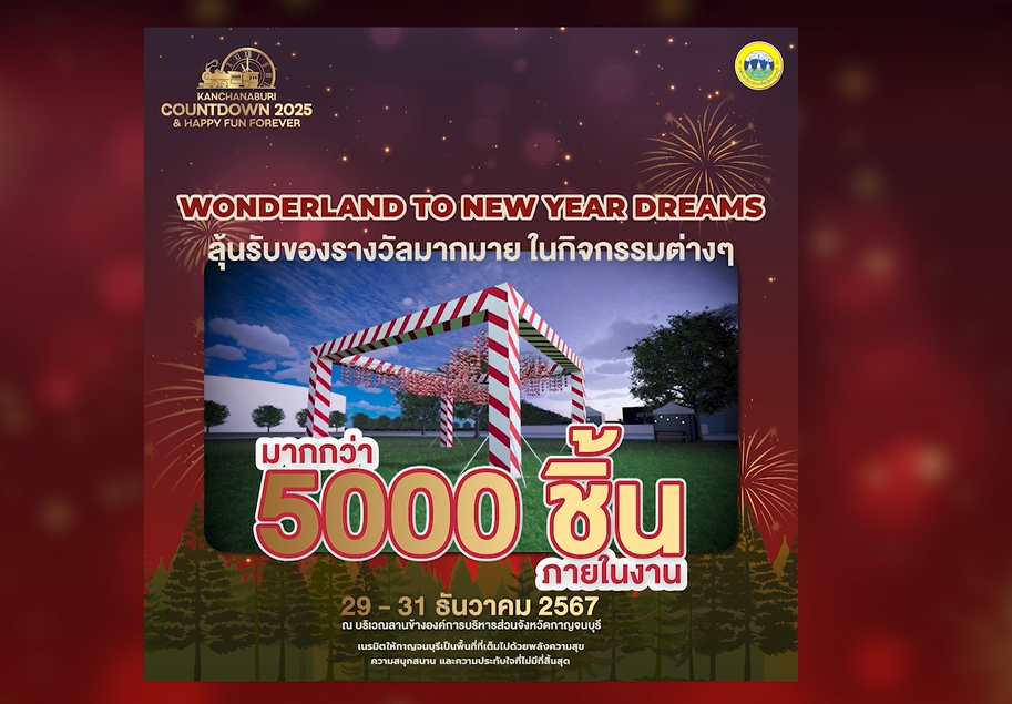 ขอเชิญชวนชาวกาญจนบุรี และจังหวัดใกล้เคียง มาร่วมนับถอยหลังสู่ปีใหม่ ชวนนักท่องเที่ยวเดินข้ามปีไปกับ ขบวนรถไฟแห่งอนาคต ร่วมดื่มด่ำไปกับความสุขที่ไม่มีที่สิ้นสุด สนุกสดชื่นในโลกแห่งจินตนาการผสมผสานระหว่างความอัศจรรย์และสีสันอันลึกลับของ wonderland ในการสร้างรอยยิ้มต้อนรับปีใหม่ด้วยพลังของความสุขไปด้วยกัน กับงาน “Kanchanaburi Countdown Festival 2025 & Happy Fun Forever” ระหว่างวันที่ 29-30 ธันวาคม 2567 เวลา 16.00 – 23.00 น. และวันที่ 31 ธันวาคม พ.ศ.2567 เวลา 16.00 – 24.00 น. ณ บริเวณลานข้างองค์การบริหารส่วนจังหวัดกาญจนบุรี ตำบลท่ามะขาม อำเภอเมืองกาญจนบุรี จังหวัดกาญจนบุรี งานนี้เข้าชมฟรีทุกวันตลอดงาน ทั้ง 3 วัน ติดตามรายละเอียดเพิ่มเติมได้ที่ Facebook : Kanchanaburi Countdown Festival 2025 & Happy Fun Forever